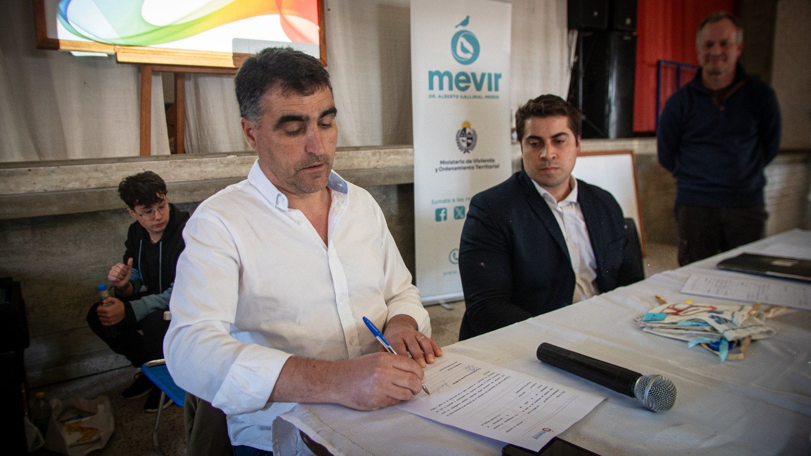 El acto contó con la presencia del presidente de Mevir, Dr. Andrés Lima acompañado por el director, Dr. Federico de la Peña.