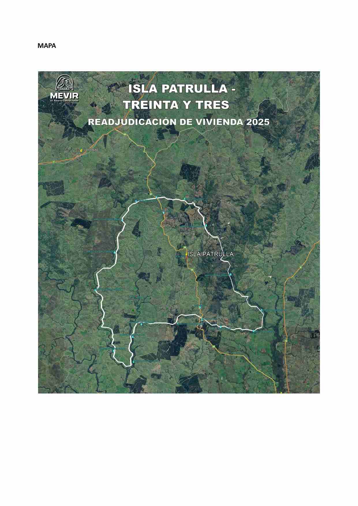 Dirigido a familias interesadas en dos vivienda en la localidad de ISLA PATRULLA (Treinta y Tres), que vivan en la zona de referencia (ver mapa más abajo) y cumplan con los requisitos establecidos
